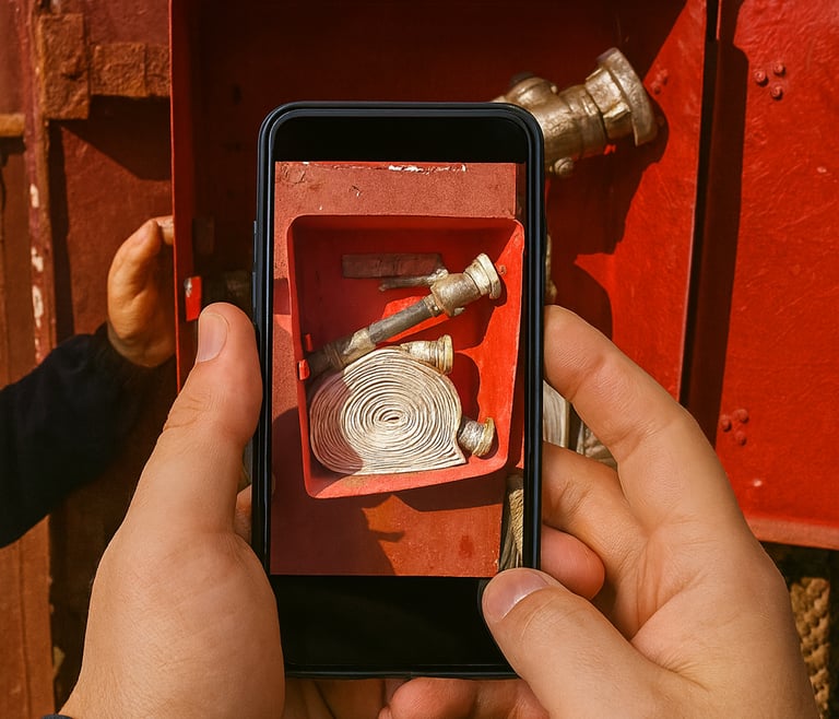 • Live remote calls: Guide onboard personnel through targeted checks (engine room, exterior, interior).